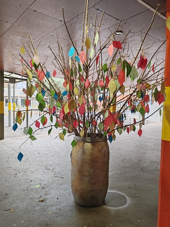 Du 3 au 14 novembre, élèves et enseignants ont ainsi travaillé ensemble sur ce thème lors des heures de vie de classe. Sous la coordination de Valentine Folcke, conseillère principale d’éducation de l’établissement, élèves et professeurs ont écrit des messages forts sur des feuilles de couleur imitant des feuilles d’arbre.